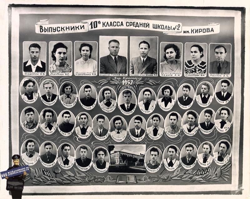 Краснодар. Выпускники 10 "А" класса средней школы №2 им. Кирова. 1957 год.
