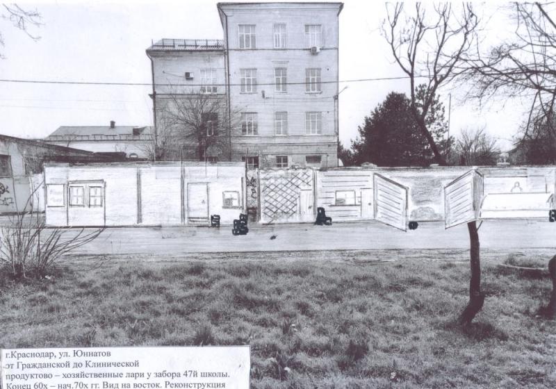 Прошу тех,кто помнит что-нибудь о строениях на этом снимке,написать.Слева направо:часовая или сапожная мастерская,пункт приёма бутылок(раньше обувный иагазин),загородка для хранения ящиков с бутылками,старый посудный пункт,овощной ларь,кондитерская витрина.Фото разместил М.Крылов.